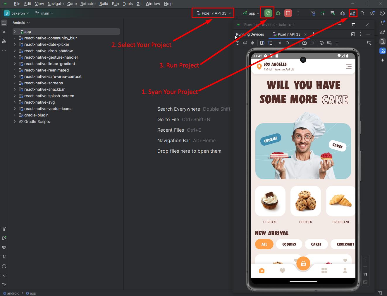 Clean projectafter Sync project - Step 4: Select virtual device and Run your application