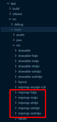 open folder ./package/android/app/src/main/res/..