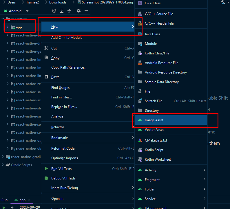 - Right Click on app folder.