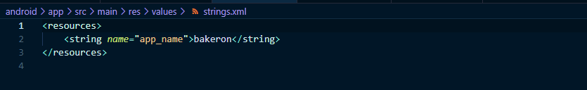 Open file ./package/android/app/src/main/res/values/strings.xml and replace BakeRon with your app name
