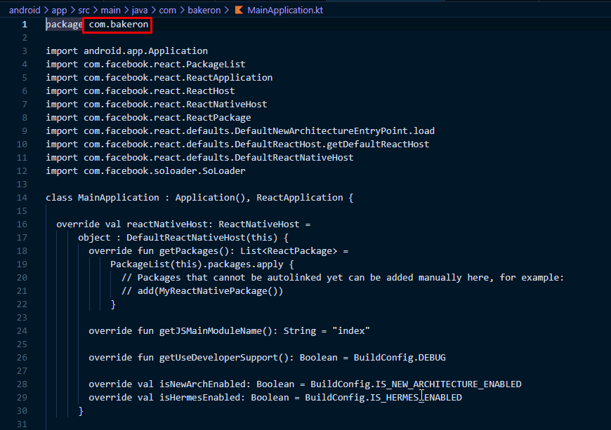 2. In: /app/src/main/java/com/BakeRon/MainApplication.Kt
