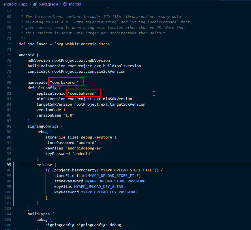 3. And in ./android/app/build.gradle
